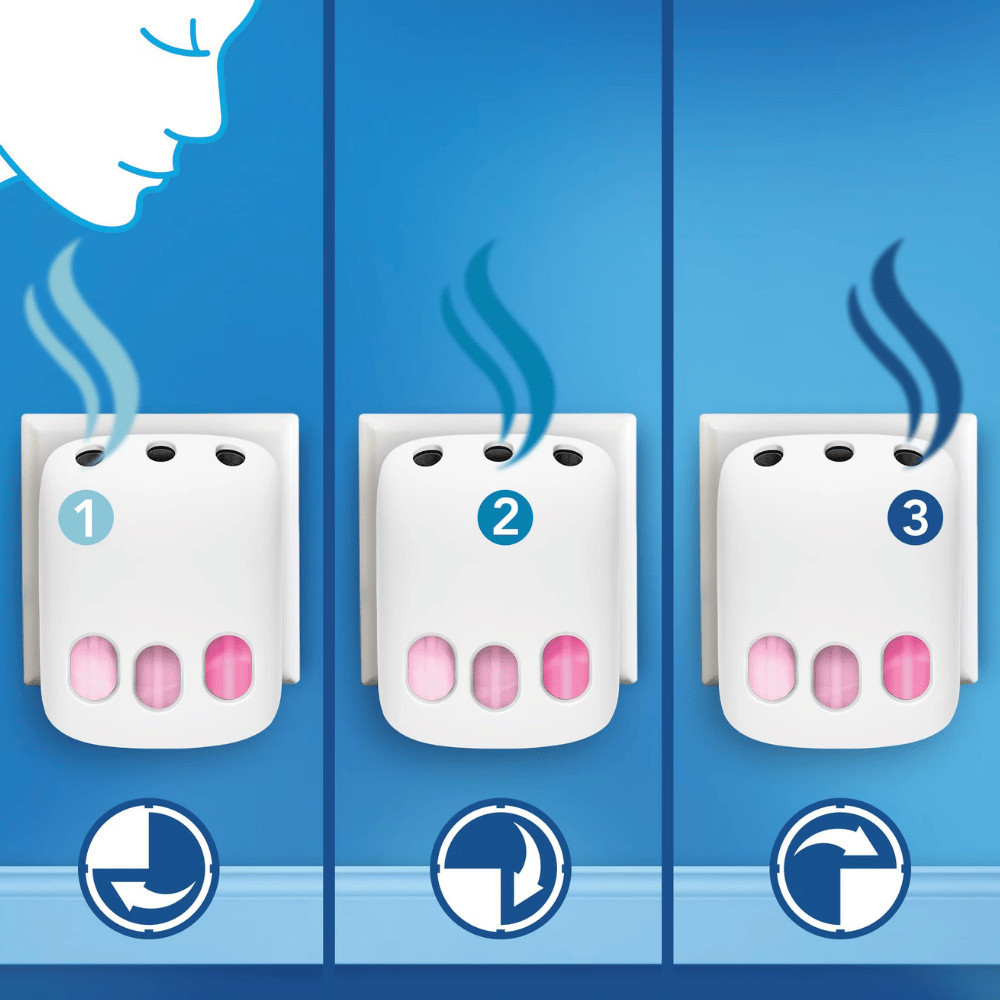 hogy 45 percenként automatikusan váltogatja a 3 egymást kiegészítő, kiváló minőségű illatot, így folyamatosan a frissesség élményét nyújtja.