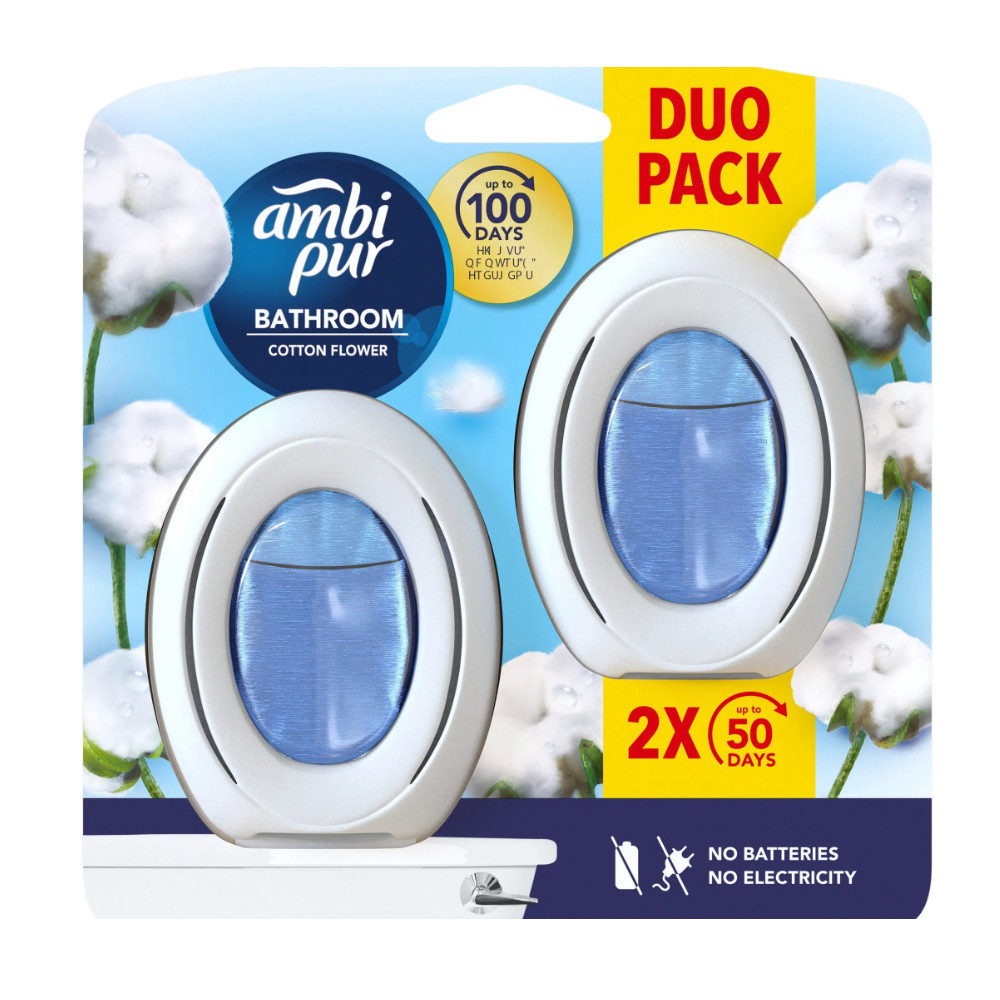 Teremts nyugodt, friss légkört a fürdőszobában az Ambi Pur Cotton Flower segítségével! A pamutvirág és frissen mosott textíliák lágy, tiszta illata hosszan tartó frissességet biztosít, miközben folyamatosan semlegesíti a kellemetlen szagokat akár 60 napon át. Elektromos áram nélkül működik, így bárhová könnyedén elhelyezhető, és diszkréten gondoskodik a kellemes illatról.