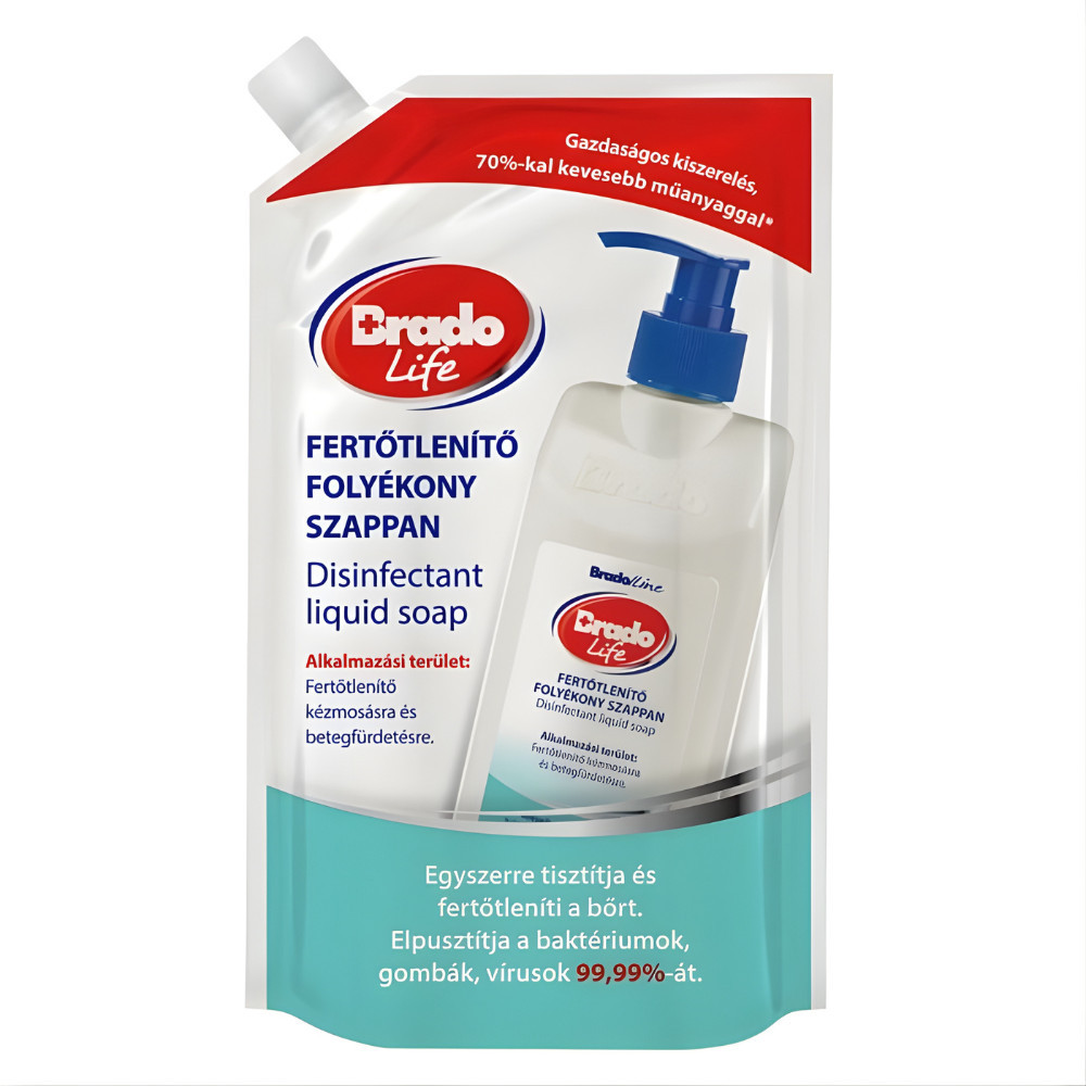 A Bradolife fertőtlenítő folyékony szappan egyszerre tisztítja és fertőtleníti a bőrt, elpusztítva a kórokozók 99,9%-át. Bőrbarát formulája és gazdaságos utántöltő kiszerelése ideális a mindennapi higiénia biztosítására.