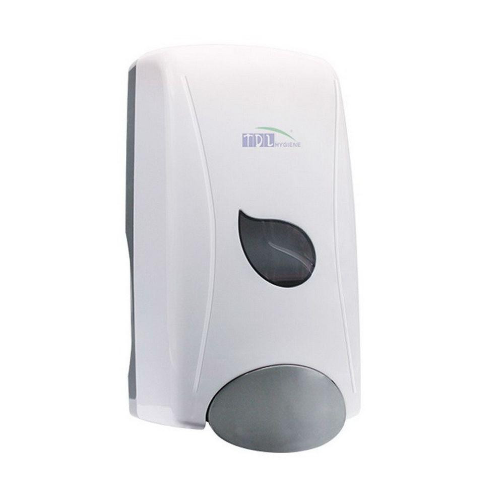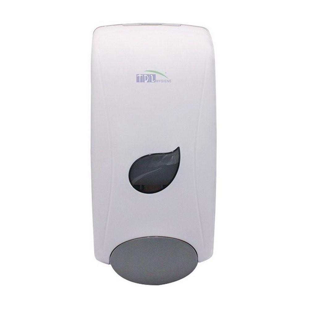 Folyékony szappan és kézfertőtlenítő gél adagoló. 1 literes tántölthető tartállyal. A tartály kivehető és tisztítható. Fehér színű ABS műanyag ház. Zárható.