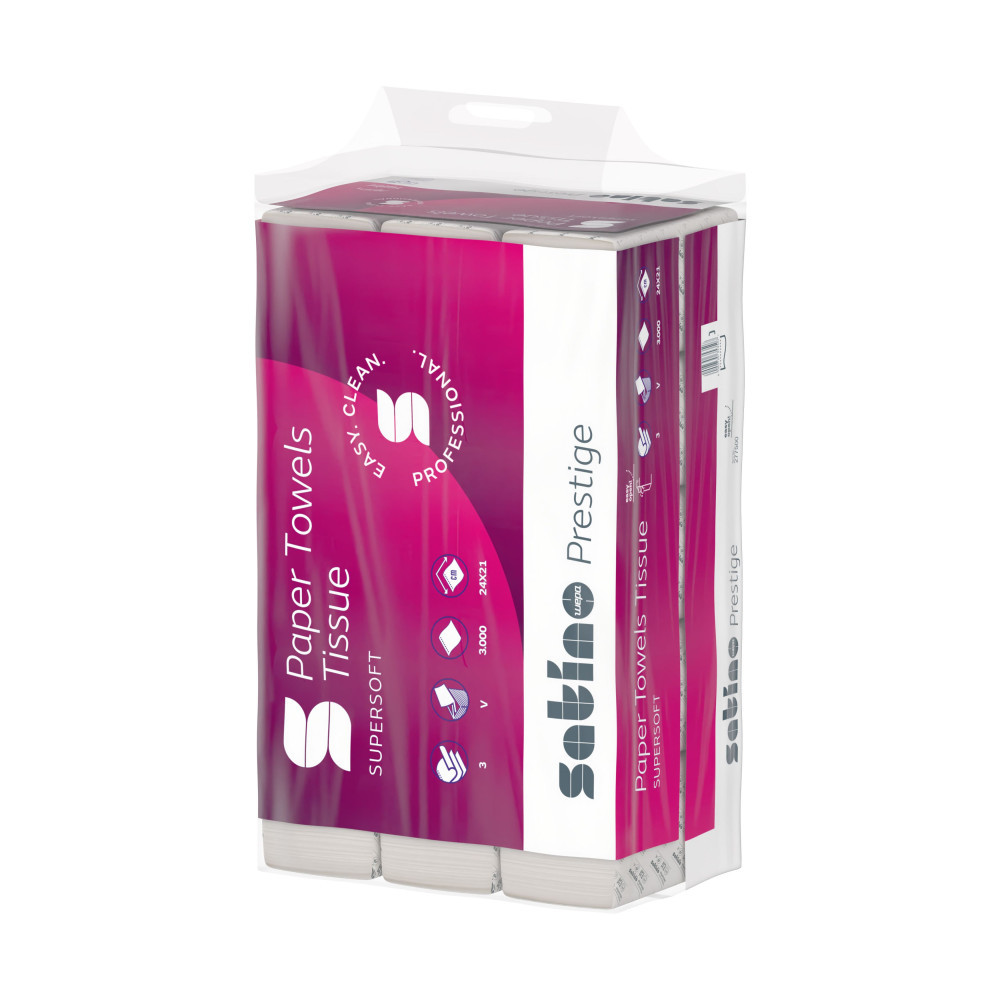 Satino Wepa Prestige V hajtogatott kéztörlő 3 rétegű, cellulóz, 24x21cm, 3000lap/zsák