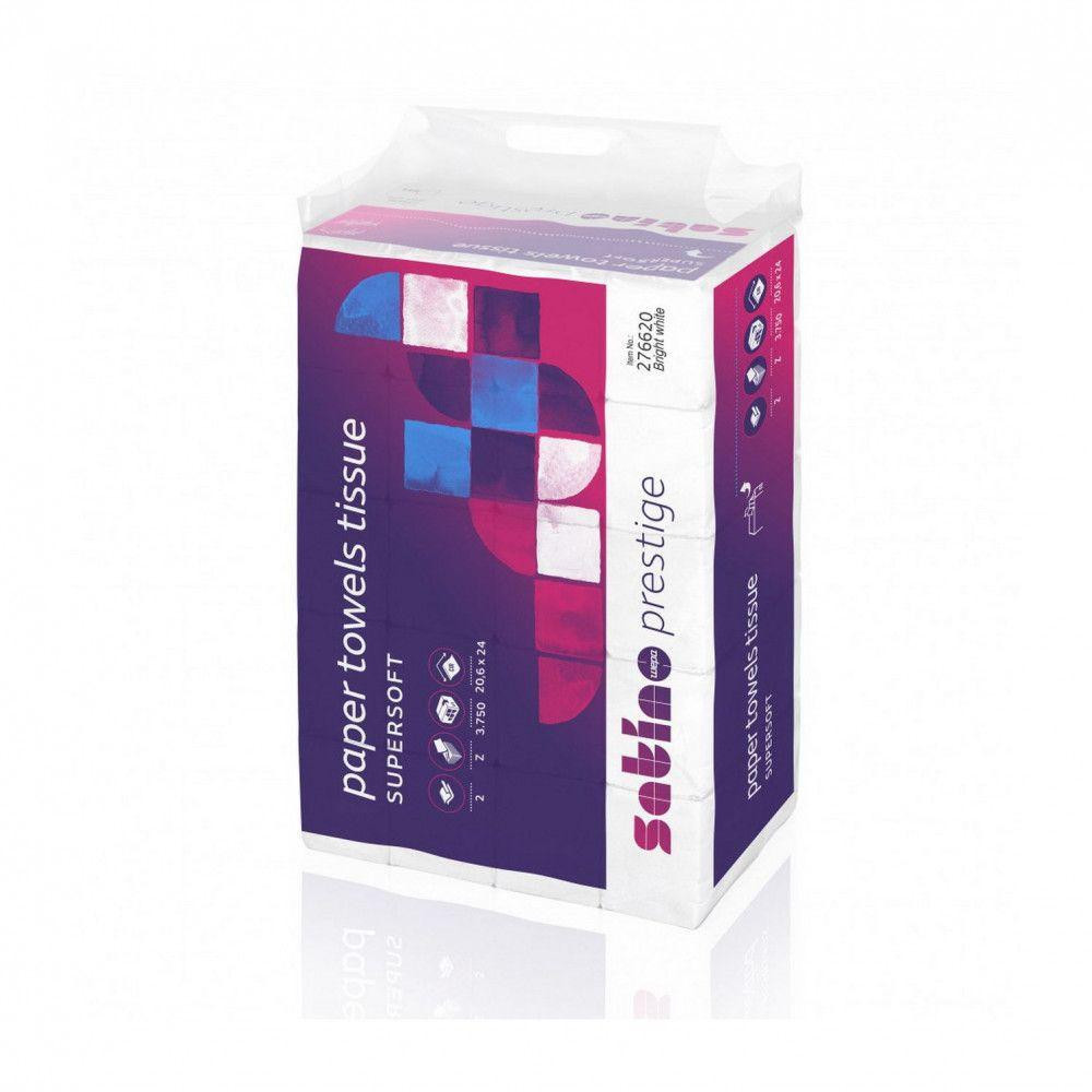 - Satino wepa Prestige Z hajtogatott kéztörlő 2 rétegű, fehér, 20,6x24cm, 25x150 lap/zsák
