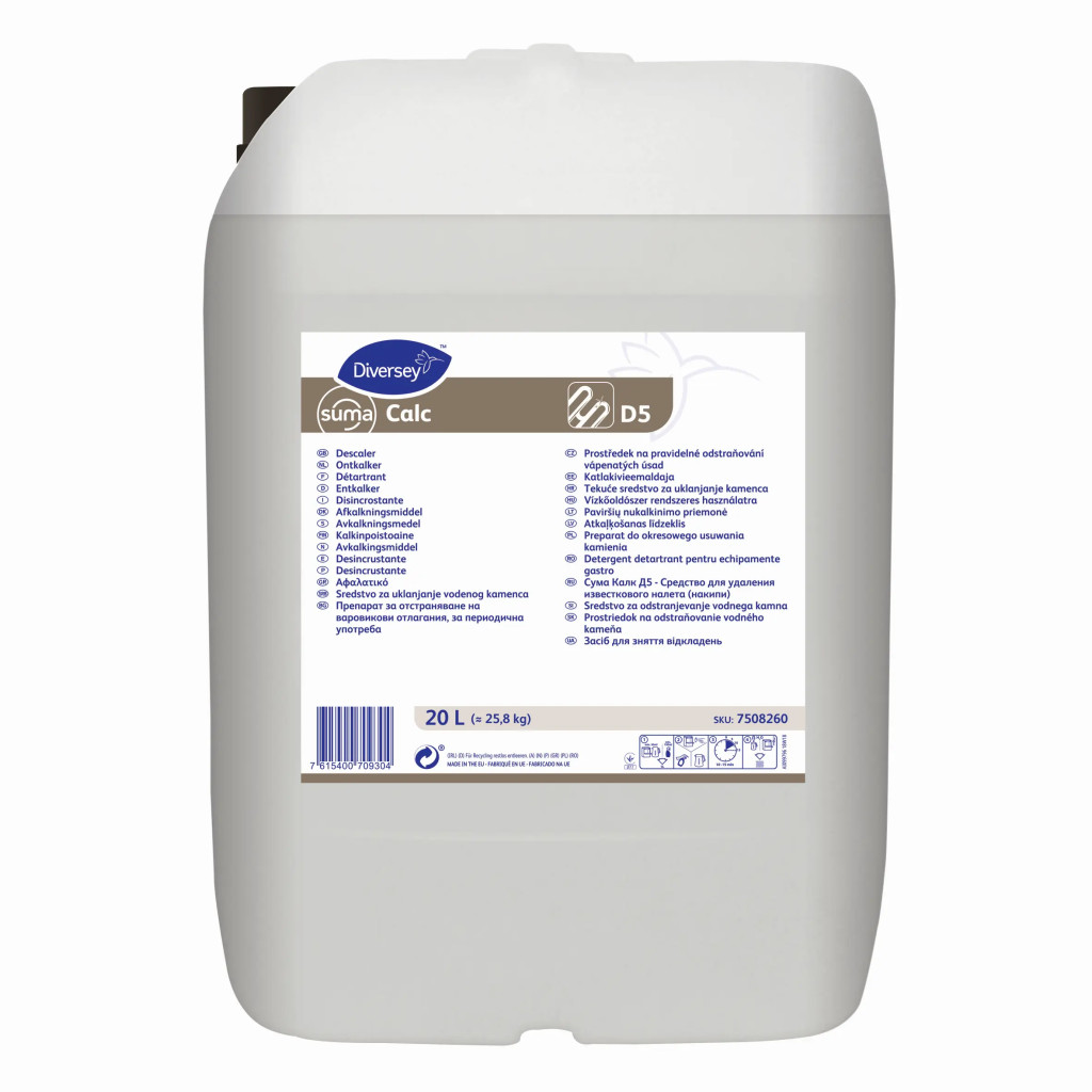A Suma Calc D5 egy savas összetételű koncentrált vízkőoldószer, mely hatékonyan használható mosogatógépek, valamint konyhai eszközök és berendezések vízkőtelenítésére.