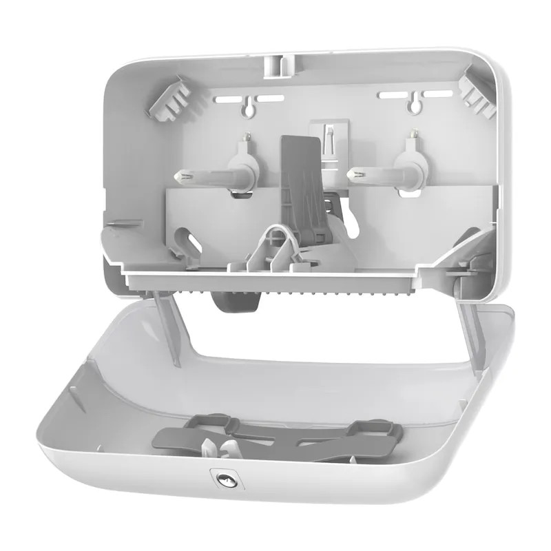A Tork belsőmag nélküli Mid-Size toalettpapír-adagoló professzionális higiéniai megoldás közepes és nagy forgalmú mosdókba, amely nagy kapacitású, belsőmag nélküli papírtekercseket használ. Stabil, higiénikus és egyszerűen karbantartható adagolási rendszerével kevesebb utántöltést és kevesebb pazarlást biztosít.
