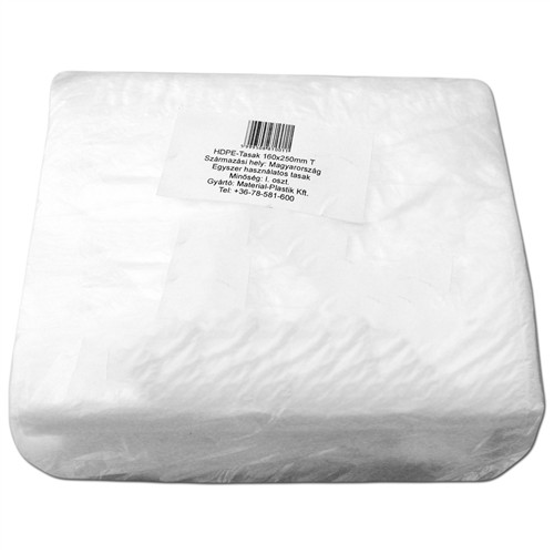 • Anyag: A tasak átlátszó és lineáris polietilénből (HDPE) készült, ami tartós és könnyen tisztítható.