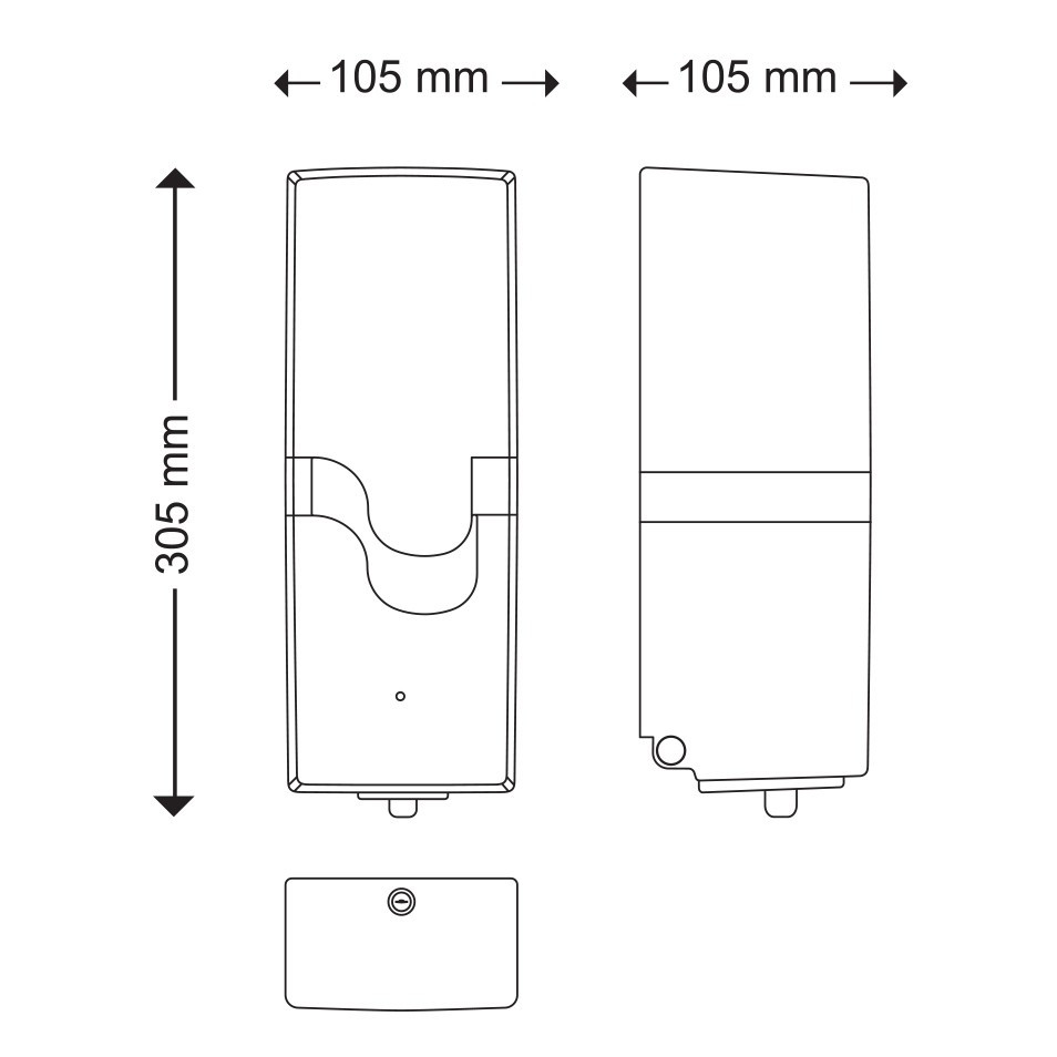 - 105 x 105 x 305 mm (szél x mély x mag)